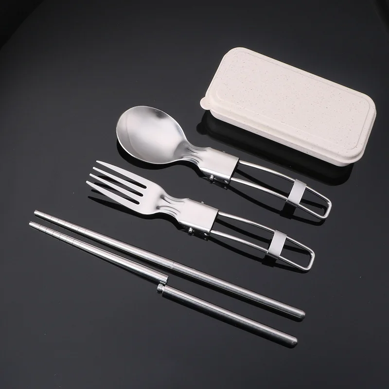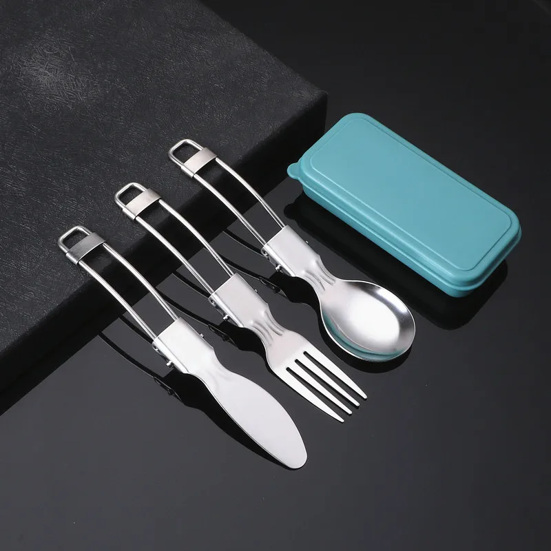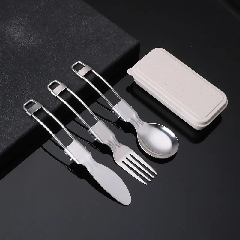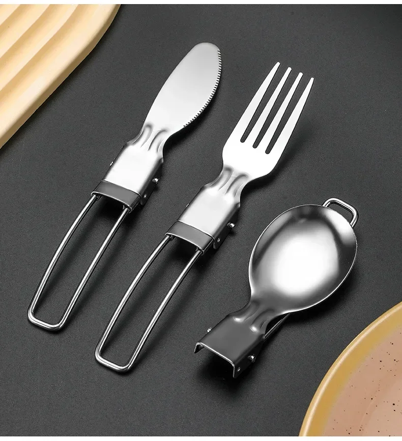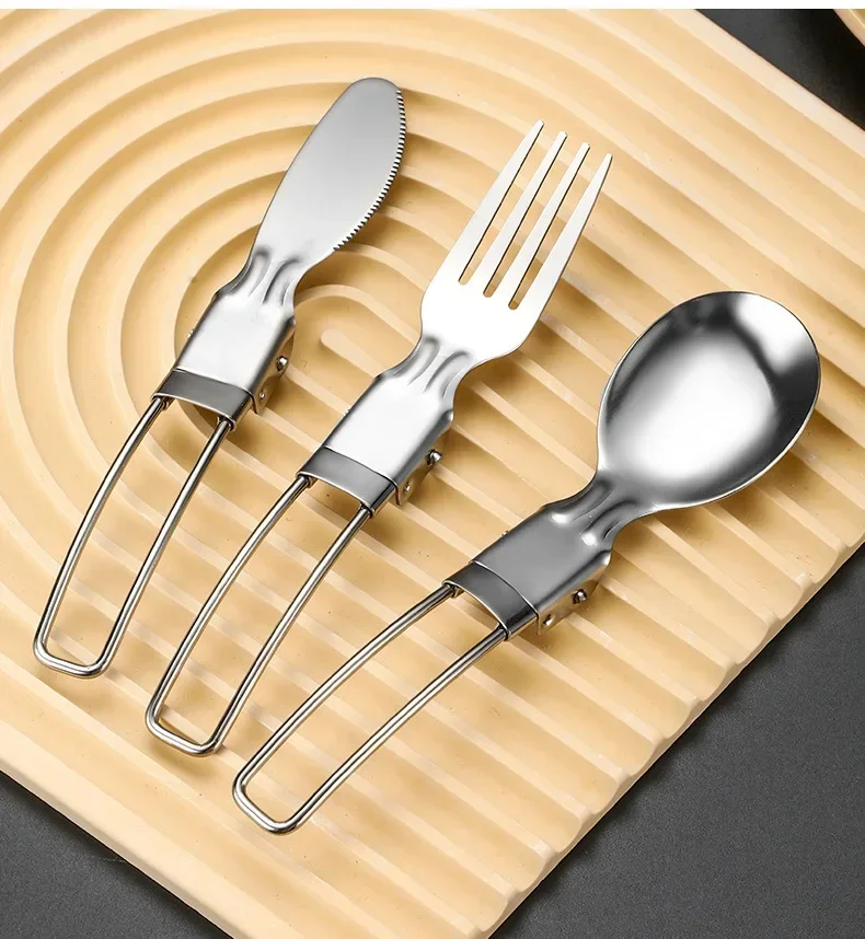 3PCS Mini Portable Outdoor Spoon Fork Tableware Camping Stainless Steel Cutlery Set for Hiking Outdoor Camping Cooking Supplies